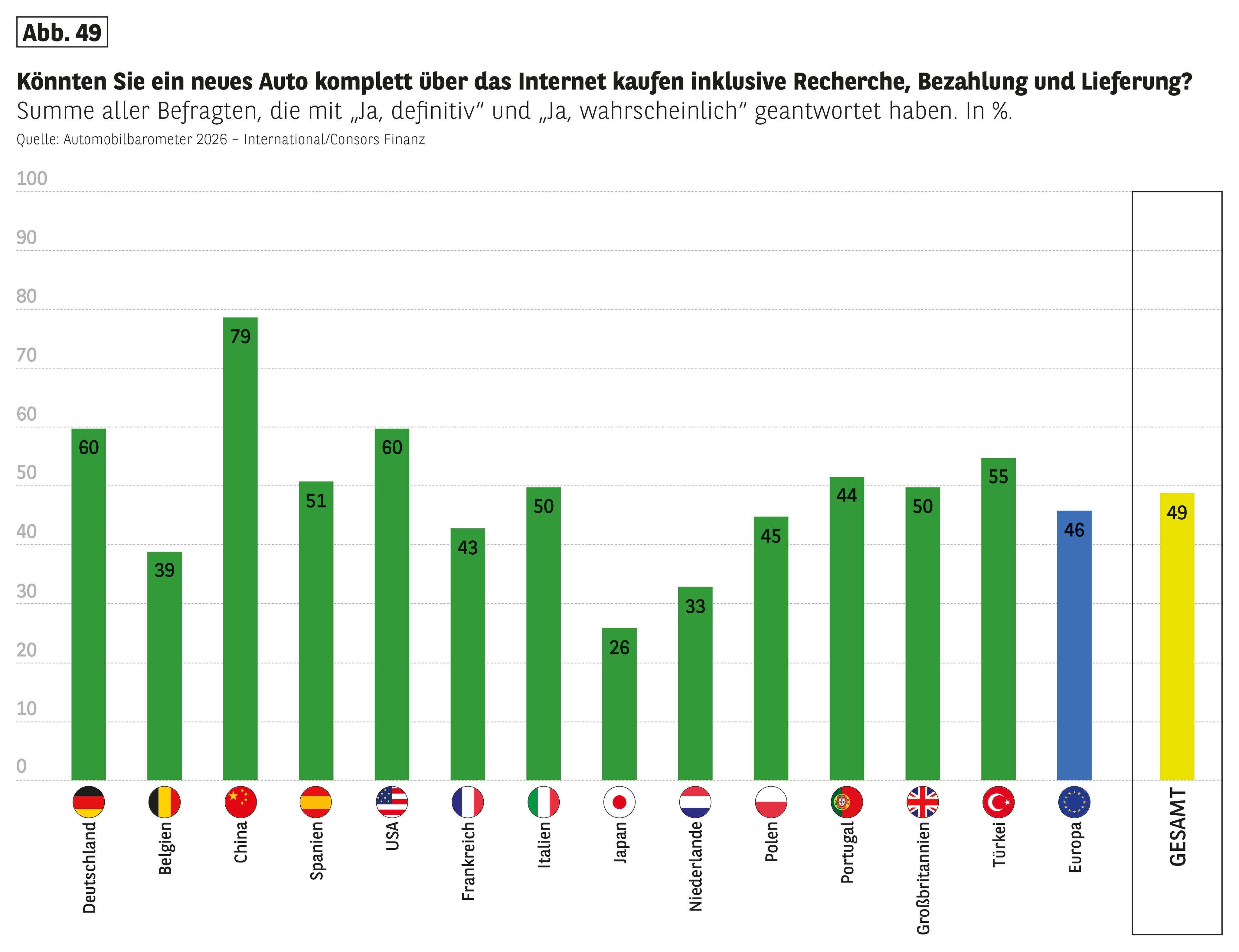 Händler genießen ein positives Image und Konsument:innen haben ein hohes Vertrauen in die persönliche Beratung, insbesondere bei jüngeren Generationen. Allerdings steigt die Bereitschaft, online einzukaufen, und hat in Deutschland bereits die Mehrheit erreicht. Dennoch bestehen Hemmnisse wie die fehlende Möglichkeit, Fahrzeuge vor dem Kauf zu testen, die Angst vor versteckten Mängeln und der Mangel an persönlichem Kontakt.