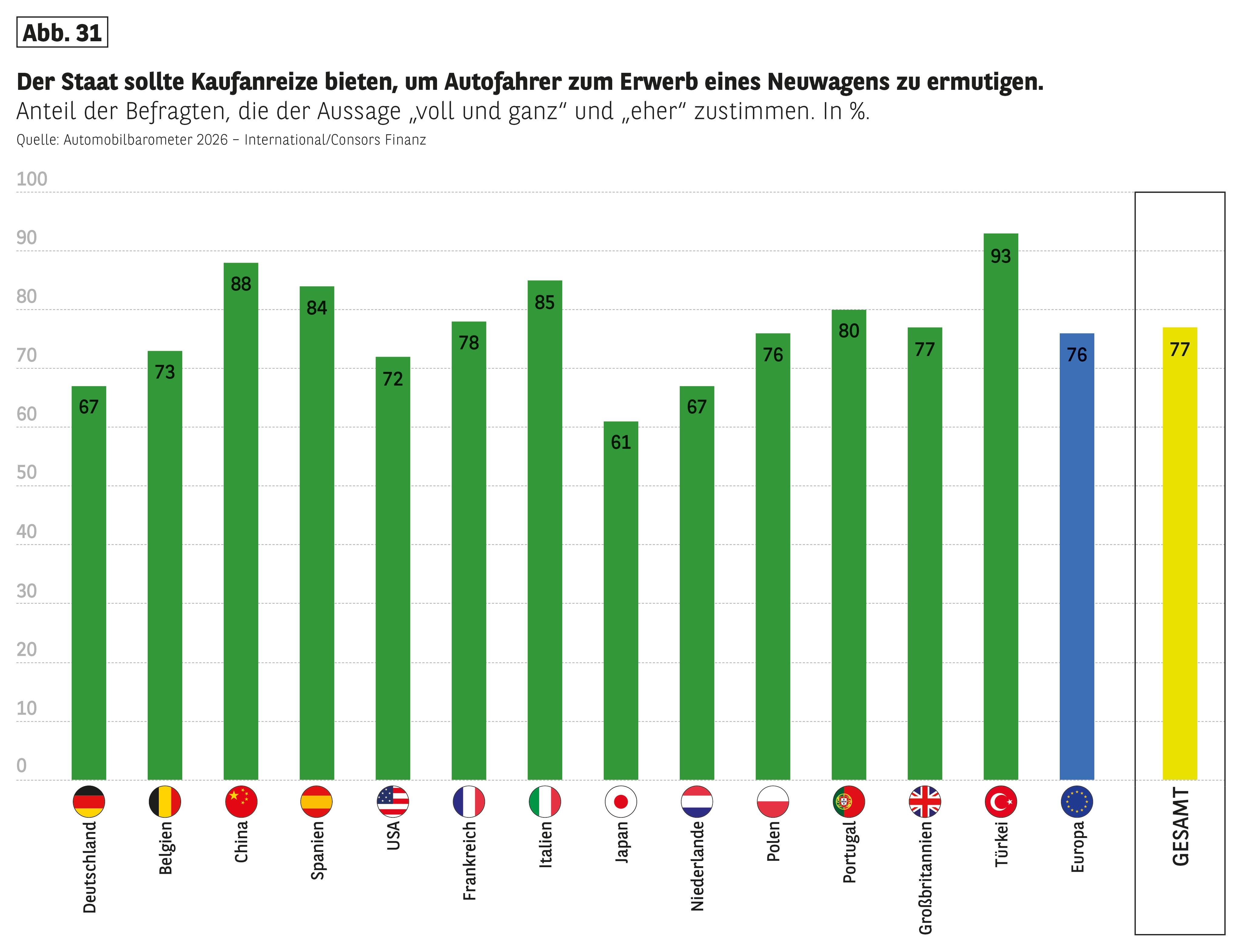 - "Der Staat sollte Kaufanreize bieten, um Autofahrer zum Erwerb eines Neuwagens zu ermutigen." 31