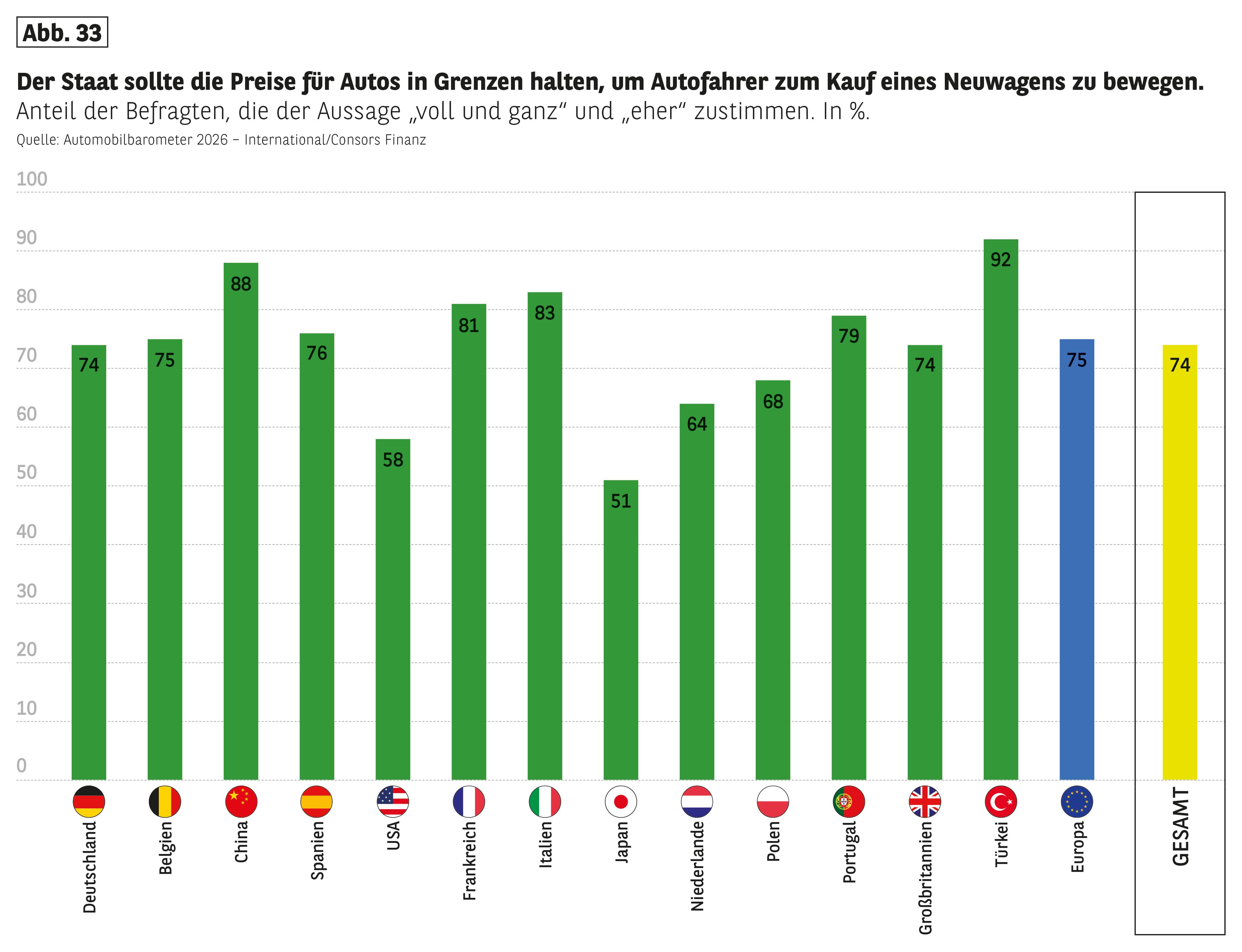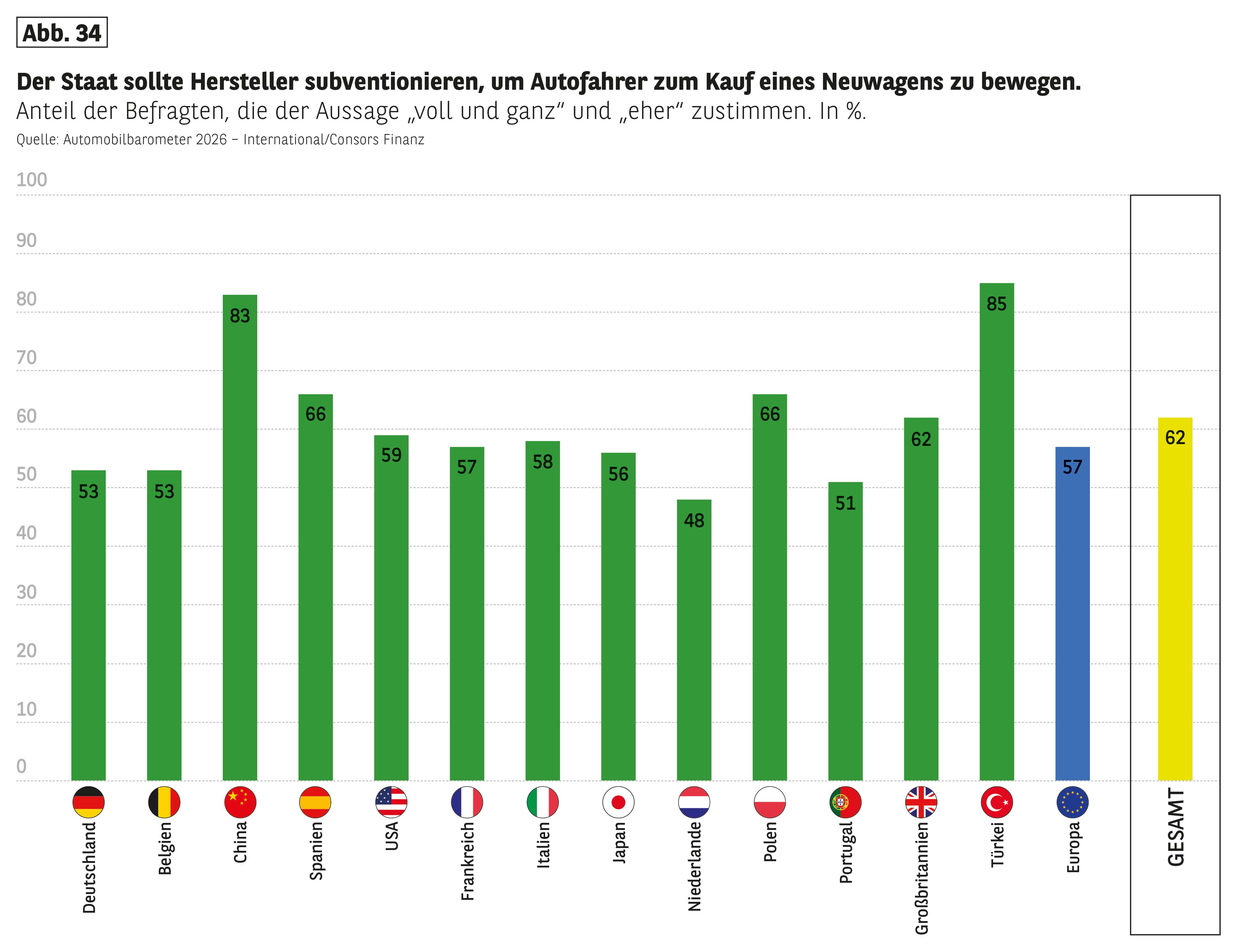 - "Sollten die Normen und Vorschriften (Sicherheit, Emission) in Ihrem Land gelockert werden, um Neuwagen günstiger zu machen?" 35
